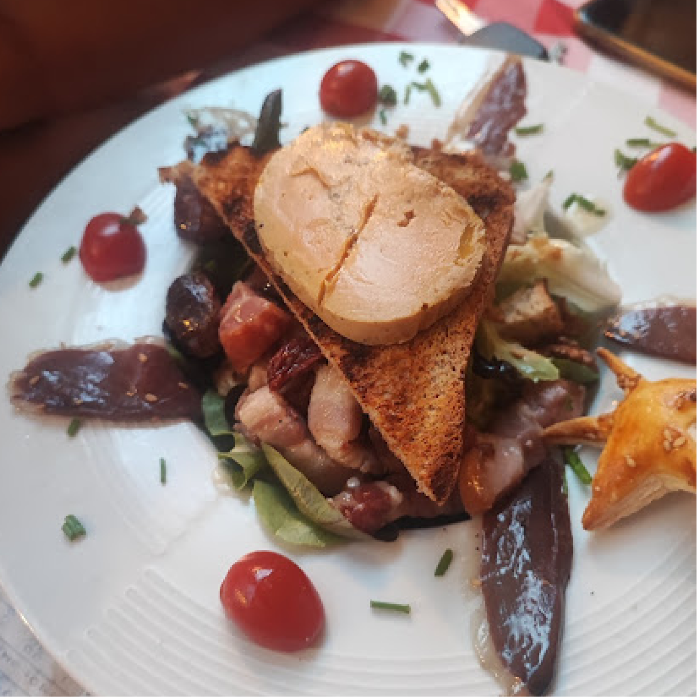 Tout est préparé sur place avec des produits frais et locaux. Chaque midi, un menu complet à 9,90 € change au fil des jours, accompagné d’autres formules qui suivent les saisons. Un plat végétarien est toujours au rendez-vous, et le chef s’adapte volontiers aux envies particulières. Nos spécialités ? Des recettes maison, et notamment notre foie gras fait maison, disponible aussi à la commande pour emporter un peu de l’Épicurie chez vous